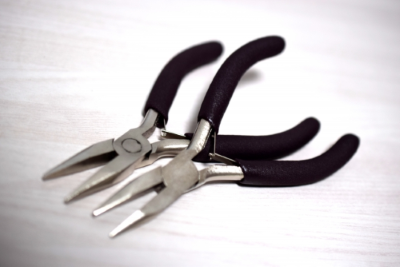平ヤットコは、丸めたワイヤーを固定したり、細かいパーツをつかんだりするときに便利な道具です。